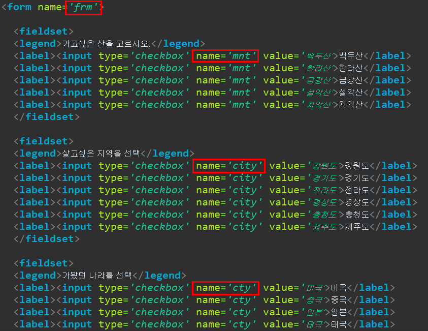 <label><input type='checkbox' name='mnt' value='설악산'>설악산</label>