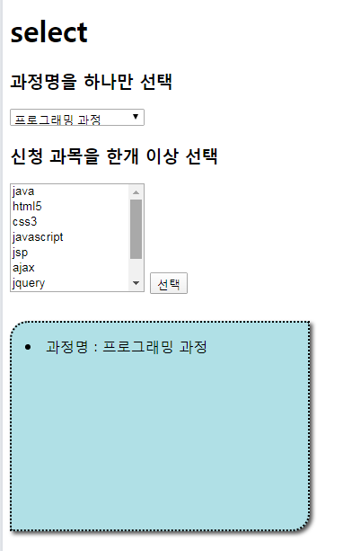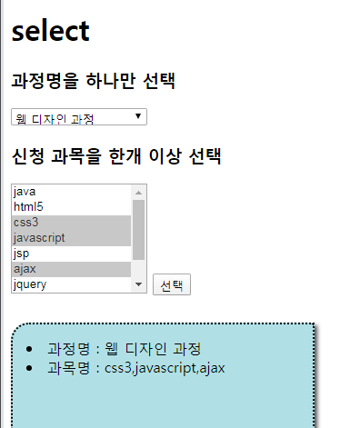 예제 : selectbox로 과정명을 하나만 선택하고 신청 과정을 복수로 선택할 수 있도록 구현