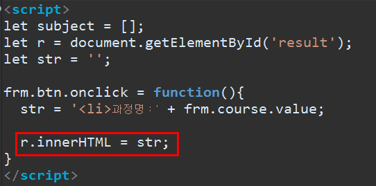 - frm이 가지고 있는 subject가 선택되면(selected) 해당 value를 subject 배열에 넣는다