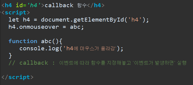 ⇒ h4에 마우스를 올리면 abc 함수가 실행됨
