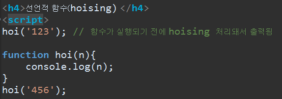 ※ 국비지원으로 학원에서 배울 때 강사님이 hoisting -> hoising으로 가르쳐주셔서 계속 "hoising" 으로 나오지만 "hoisiting"이 맞습니다 🙄
