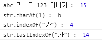 console.log('str.lastIndexOf("가") : ', index2);