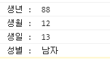 // 생년, 생월, 생일, 성별을 구별하여 console에 출력